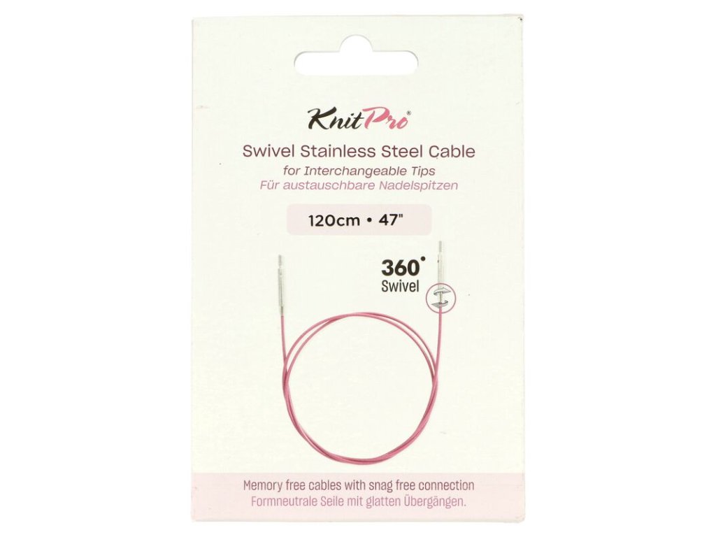 Otočná vyměnitelná lanka KnitPro jsou flexibilní, odolná a pohodlná na práci. Díky otočnému systému 360° už nehrozí kroucení ani zalamování. Lanka jsou bez paměti, takže zůstávají rovná a pružná. Jsou vyrobena z nerezové oceli potažené nylonem. Mají dlouhé twist-lock spoje s ocelovou nití, které po nasazení na jehlici vytvoří pevné a bezpečné spojení. Přechod mezi jehlicí a lankem je hladký a bezešvý, takže příze nikde nedrhne. V kovovém spoji je utahovací otvor, který se dotahuje pomocí přiloženého klíče. Díky tomu lze spoj bez námahy bezpečně zajistit. V balení najdeš také koncovky, které jednoduše nacvakneš na lanko a udrží výplet na místě. Délka lanka se udává včetně délky jehlic, tj. na jaký obvod je lanko určeno.