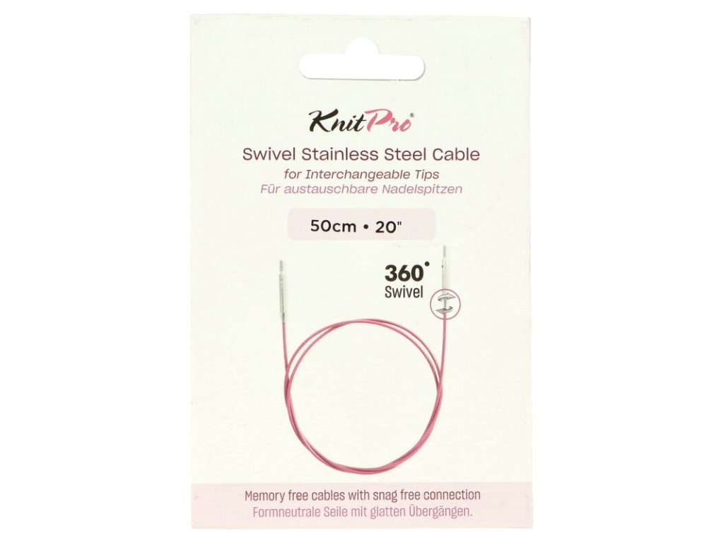 Otočná vyměnitelná lanka KnitPro jsou flexibilní, odolná a pohodlná na práci. Díky otočnému systému 360° už nehrozí kroucení ani zalamování. Lanka jsou bez paměti, takže zůstávají rovná a pružná.